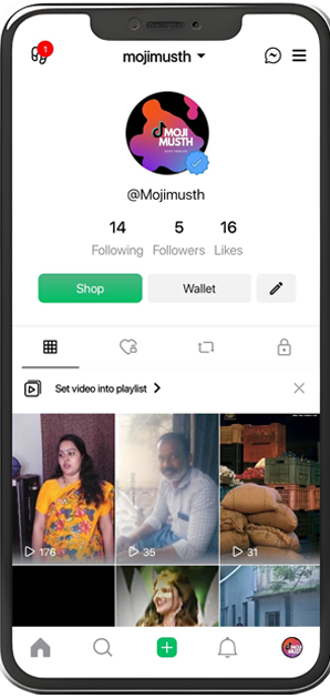 MojiMusth lets you create and share short videos easily. You can browse trending videos, watch surprise videos for special occasions, and interact with friends via a secure chat. The app also features sliding image promotions, mall offers, and fun challenges, making it engaging and entertaining for everyone.